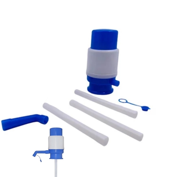 Bomba para galão de água de fácil instalação, basta colocar na boca do galão de água e ajustar. Possui bico curvo