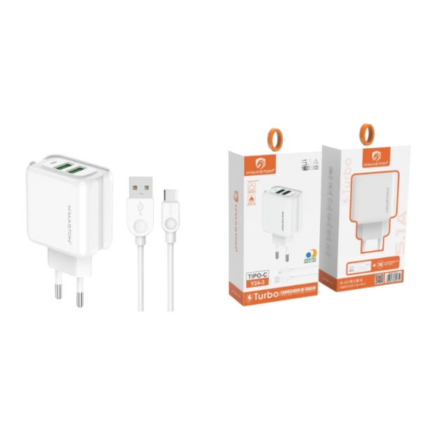 Carregador Turbo de Celular 25W Duplo Entrada Tipo C/ IOS/ V8 Hmaston Y24-1/2/3 Original
