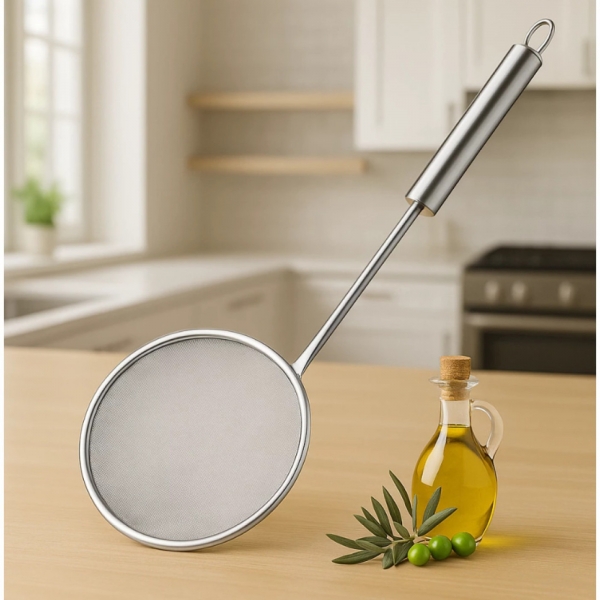 Perfeito para retirar alimentos de frituras, ele permite que o excesso de óleo escorra com facilidade, garantindo preparos mais sequinhos e saborosos. O cabo longo oferece maior segurança, protegendo suas mãos do calor durante o uso.