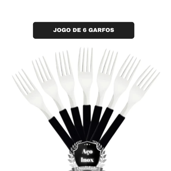 Kit Jogo De 6 Garfo de Mesa Restaurante Leme Inox Cabo Preto