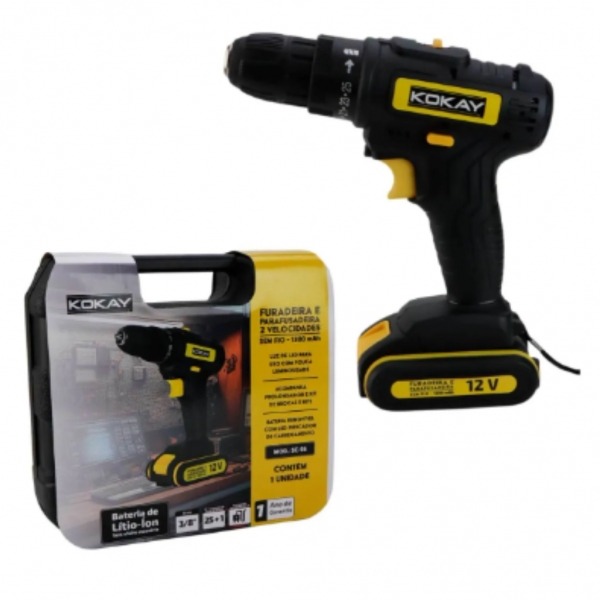 A furadeira e parafusadeira sem fio da KOKAY é projetada para oferecer precisão e praticidade. Com design robusto, conta com 20 + 1 posições de ajuste de torque e bateria de Lítio-íon recarregável com capacidade para 300 ciclos de recarga e sem efeito memória, proporcionando autonomia na utilização e eficiência em diversos tipos de trabalho.